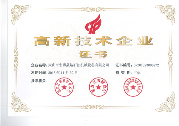 High tech enterprise certificate